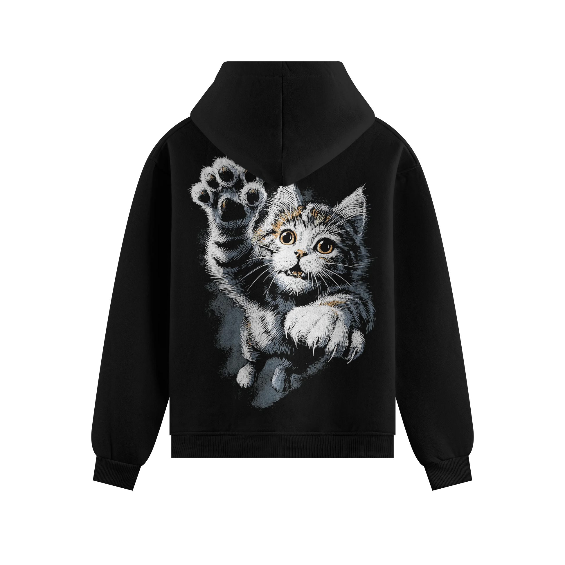 The adorable kitten raises a huge paw, saying Gimme Five. For those who seek playful connection and irrepressible fun.