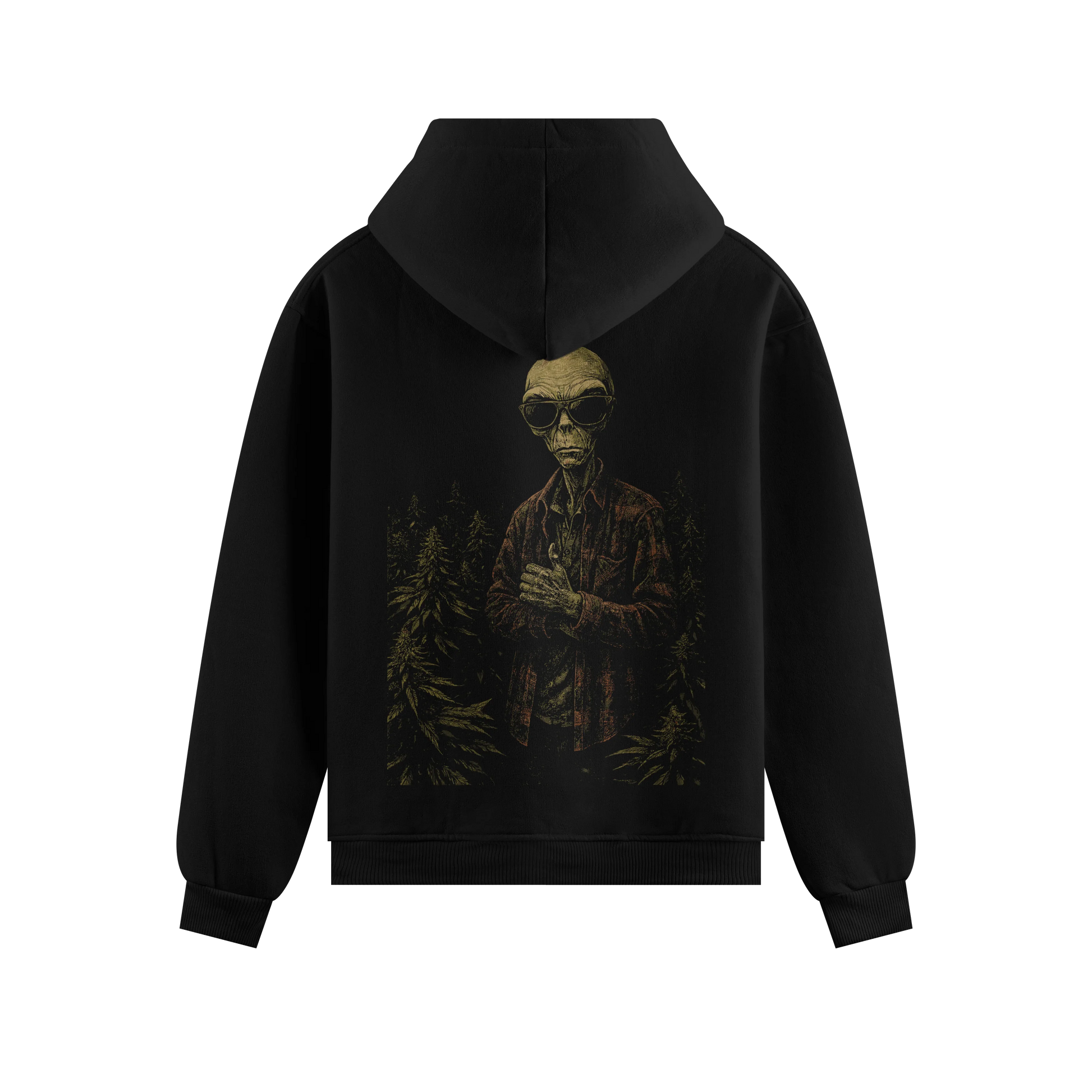 A plaid-shirt alien in shades, standing Incognito in a hemp field. For those who keep their true self hidden.