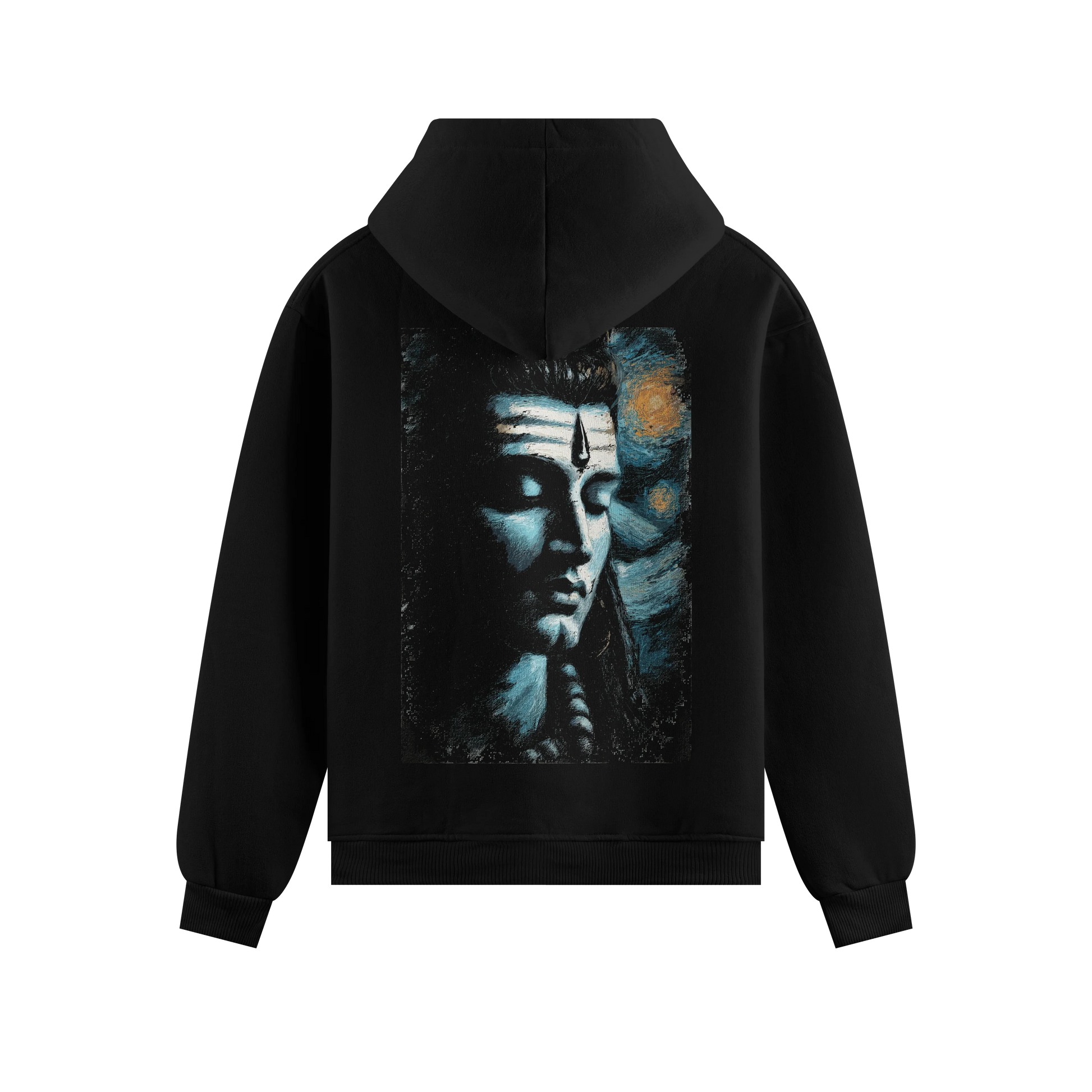 Shiva in deep meditation against a starry sky: Mauna (Silence). For those who seek inner peace and celestial calm.