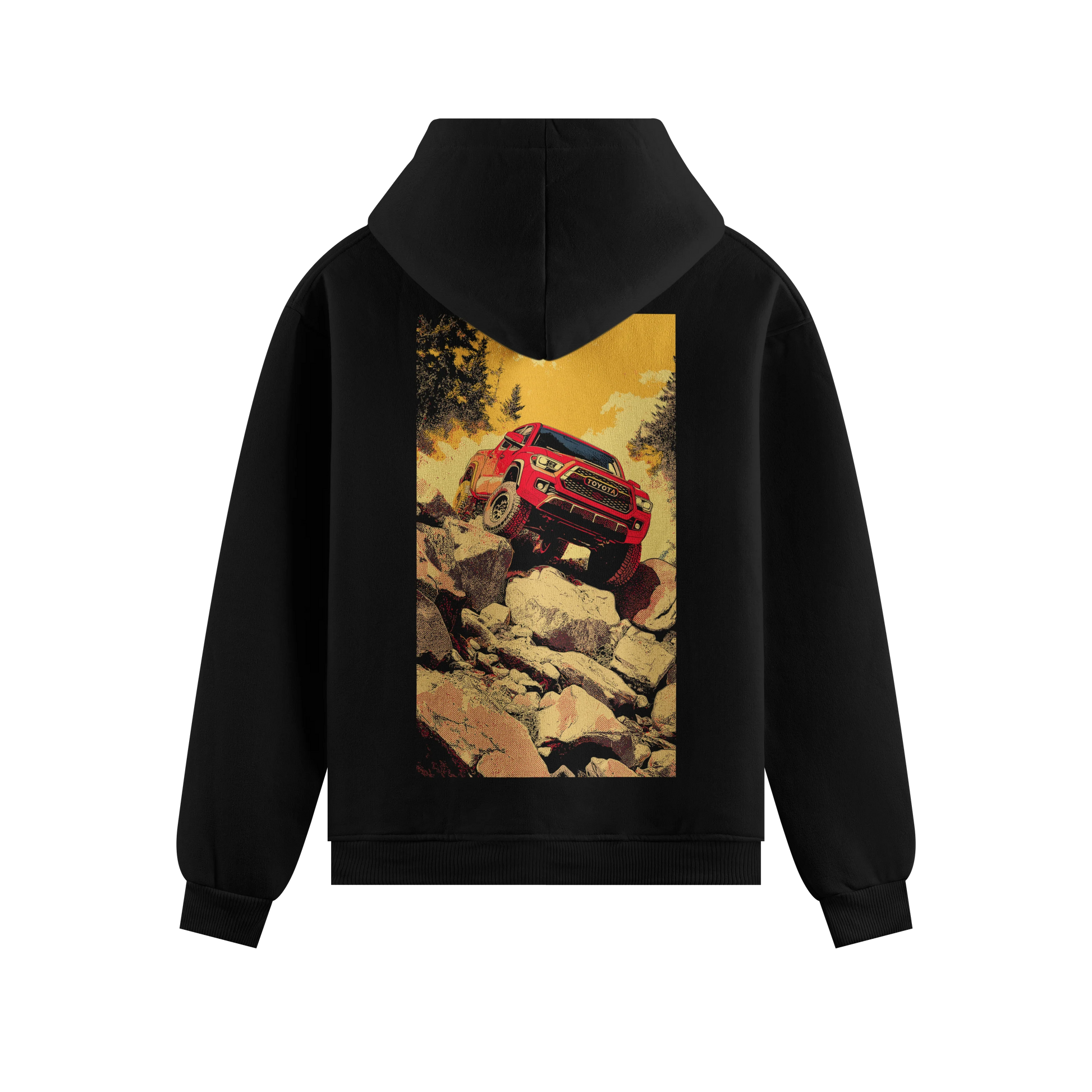 The rugged red Toyota Tacoma ascends a pile of rocks, the ultimate Off Road vehicle. For those who conquer challenges and thrive off-road.