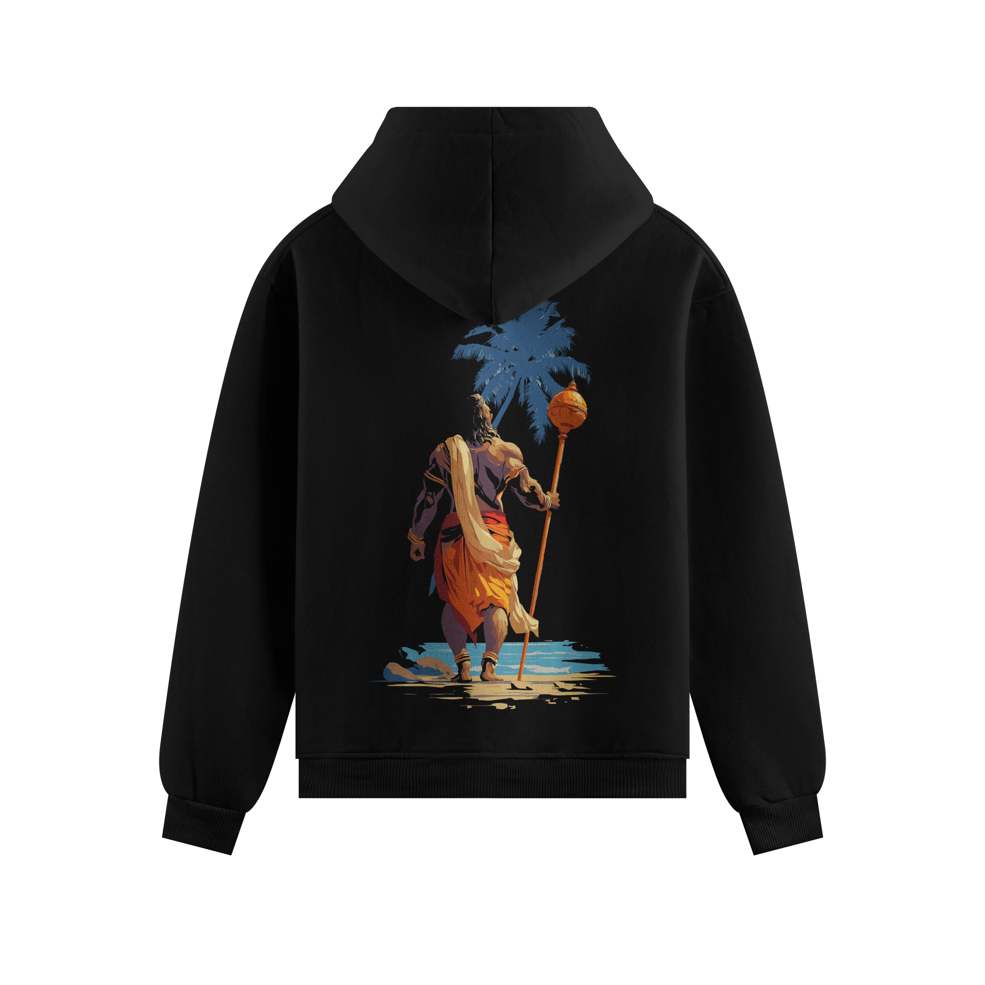 Features a towering, moss-covered stone statue of Hanuman leaning on his Gada. Designed for those who represent indestructible, timeless strength.