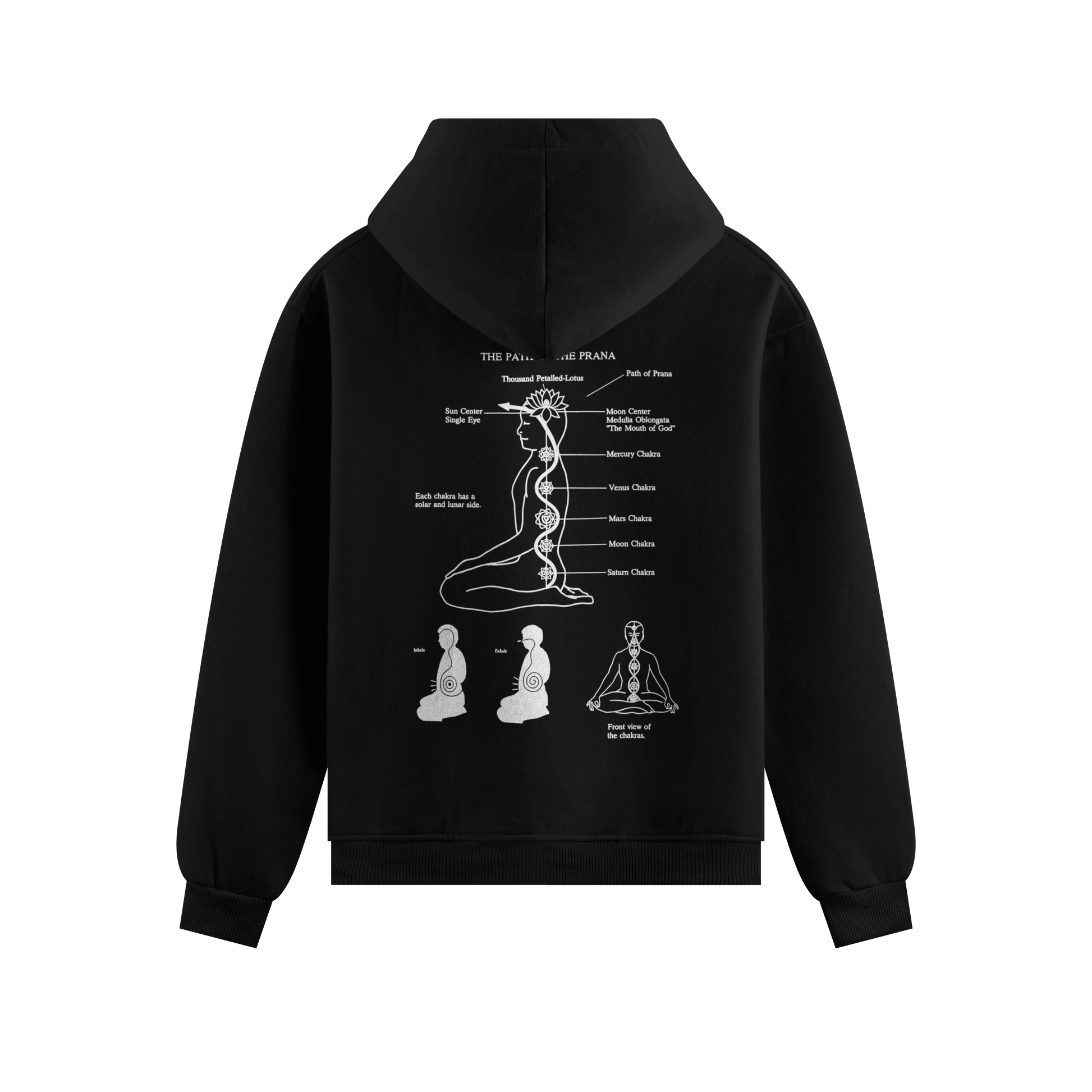 Detailed yogic diagram showing Chakras, Planetary centers, and the Path of Prana. For those seeking esoteric knowledge and connection.